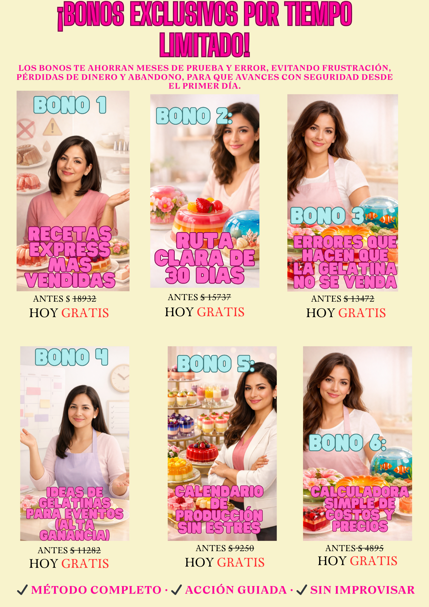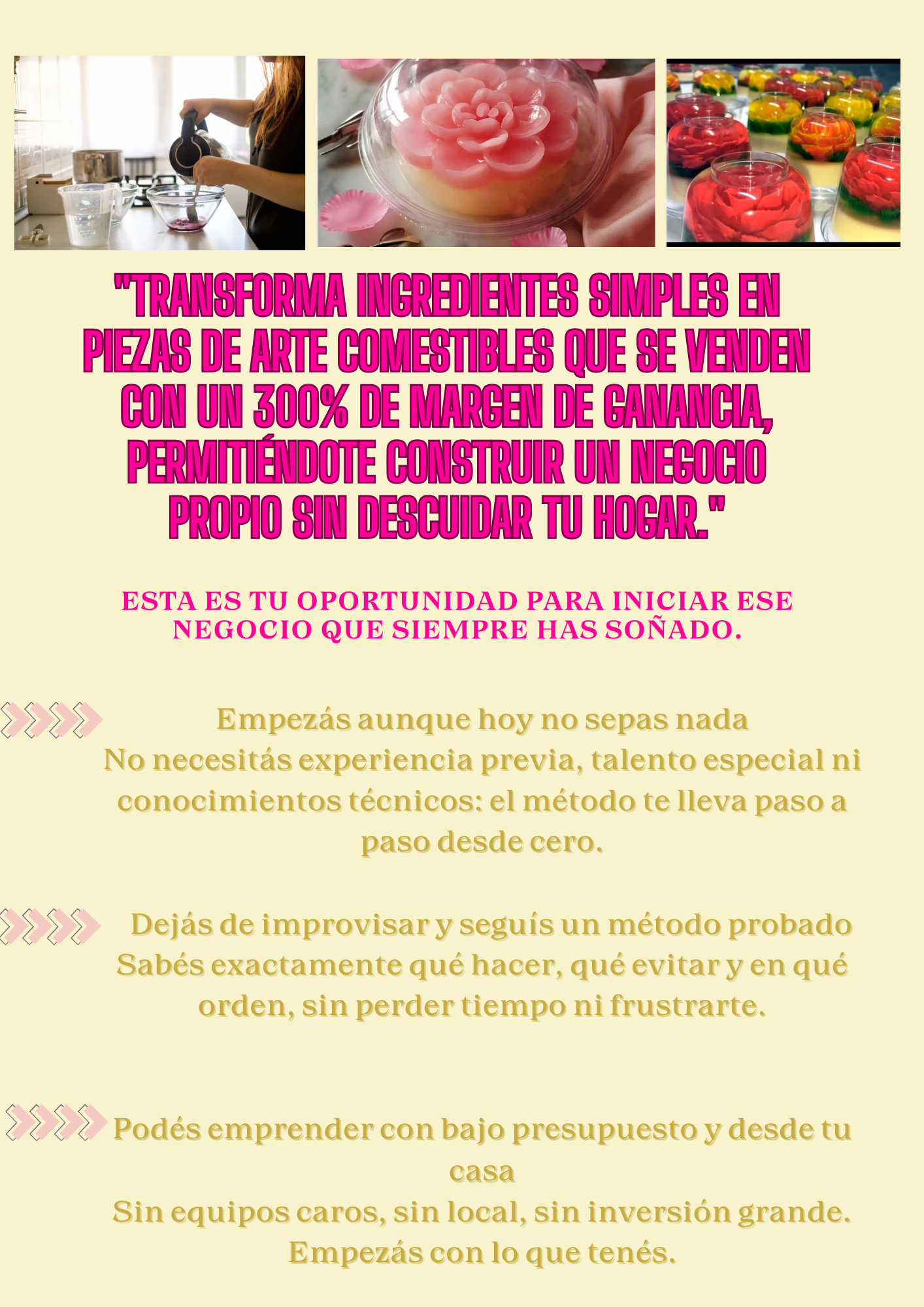 "Las gelatinas para eventos son de Alta Ganancia total. Hice mi primer candy bar el finde pasado y recuperé la inversión del ebook en un solo día. ¡Es una maza!"